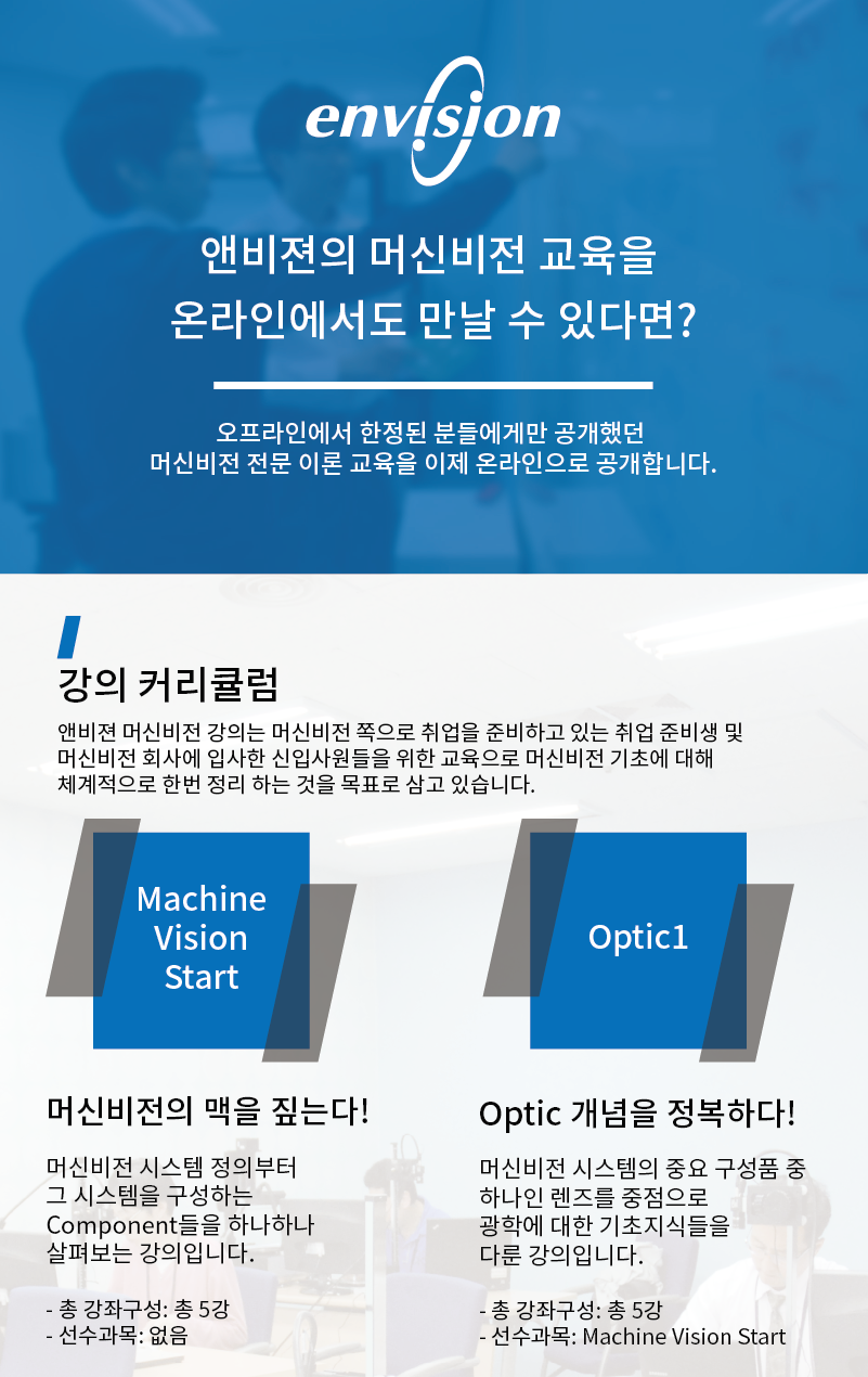 5~6년 전부터 온라인 교육에 대한 니즈들이 있어서 Machine Vision Start 교육과 Optic1 교육을